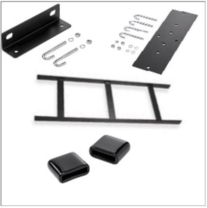 Kit Includes: 1 straight section ladder rack (54 inch LSS12BLK); 1 wall angle support with j-bolts (LWASK12BLK); 1 rack-to-runway mounting kit (LRRMPBLK); 1 end cap kit (LEC)